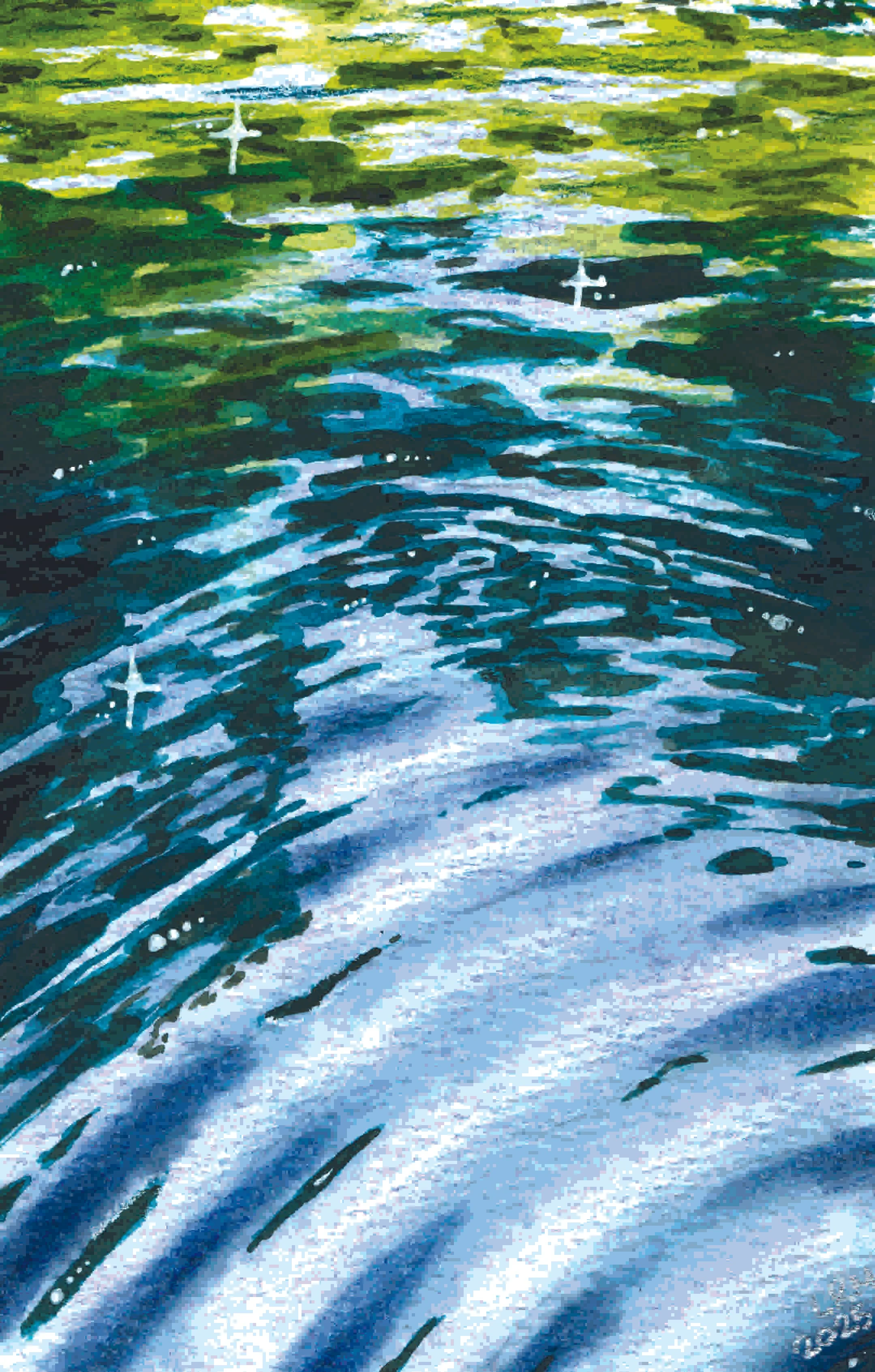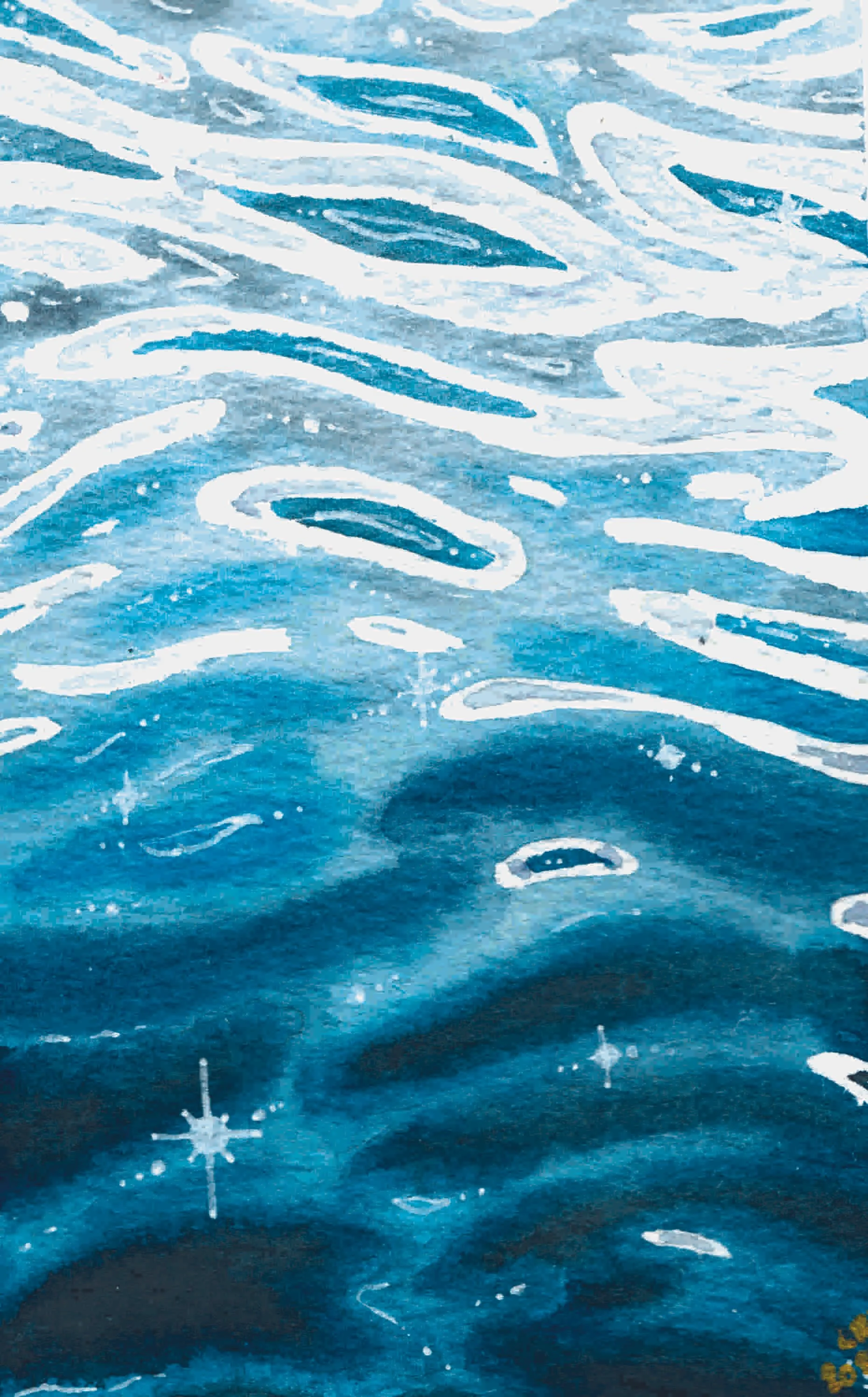 A painting of blue water ripples